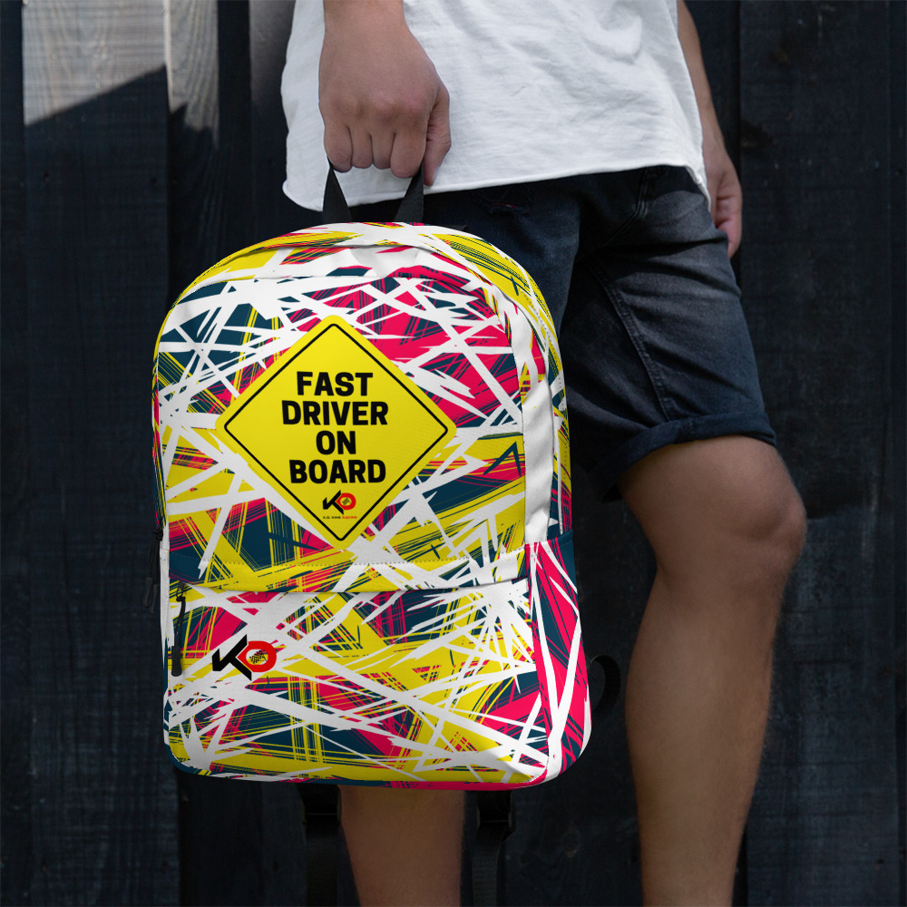 This one-of-a-kind K.O.King Racing medium size backpack is just what you need for daily use or sports activities! The pockets (including one for your laptop) give plenty of room for all your necessities, while the water-resistant material will protect them from the weather.